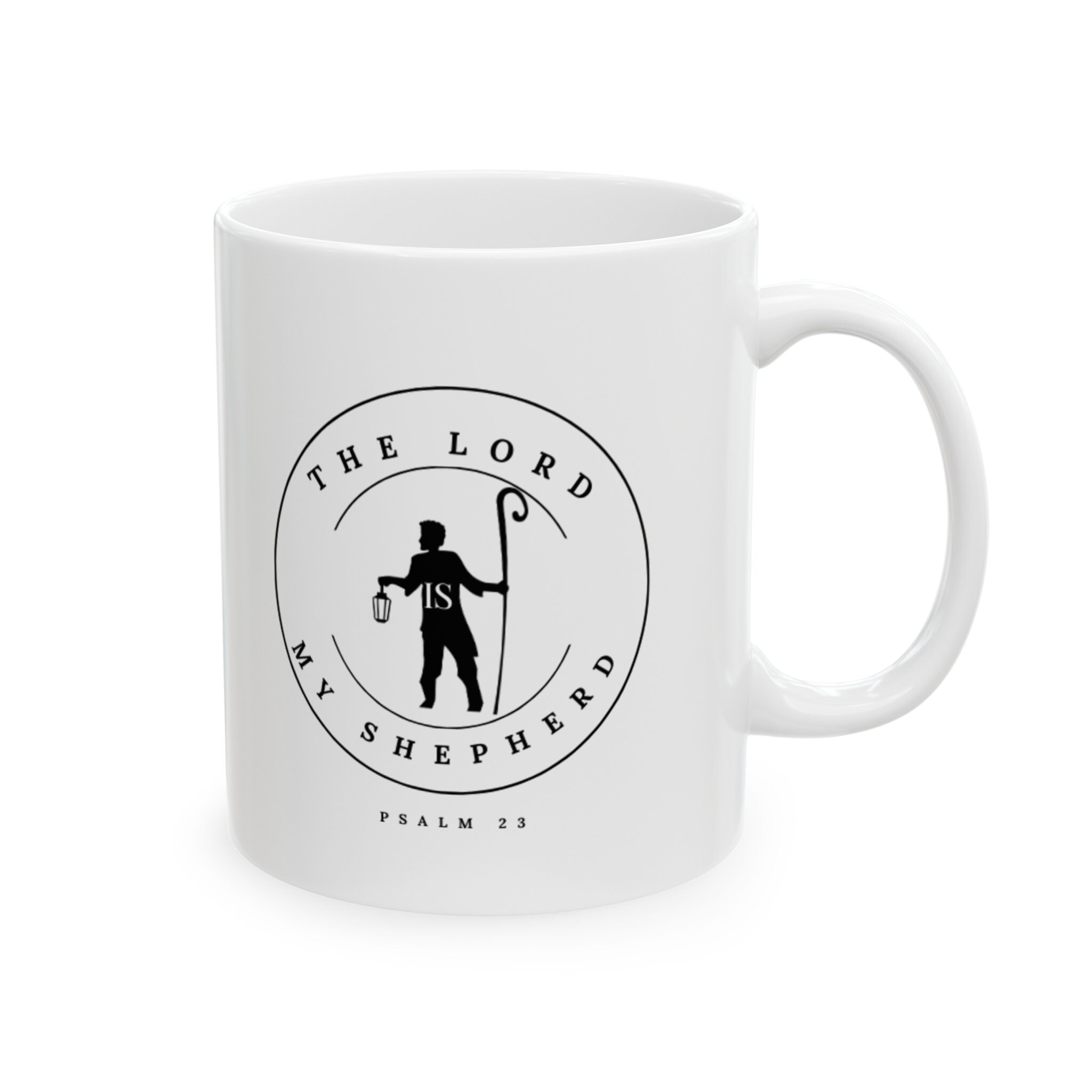 Add a touch of faith and positivity to your daily routine with our "The Lord Is My Shepherd" ceramic coffee mug. Embrace the warmth of your favorite beverage as you reflect on the blessings that come from a life directed by the Lord's guidance. It’s BPA and Lead-free, microwave & dishwasher-safe, and made of white, durable ceramic in 11-ounce size.
