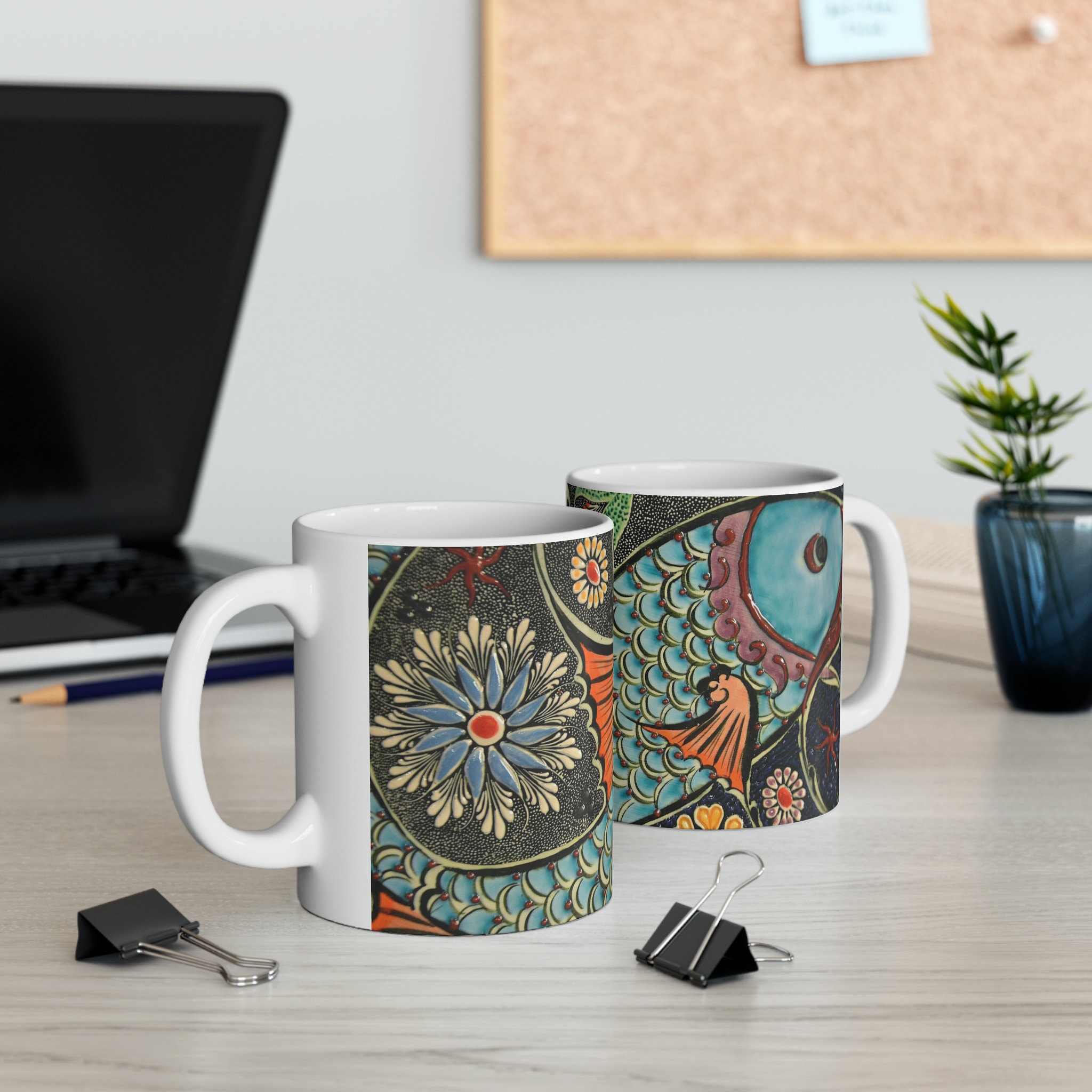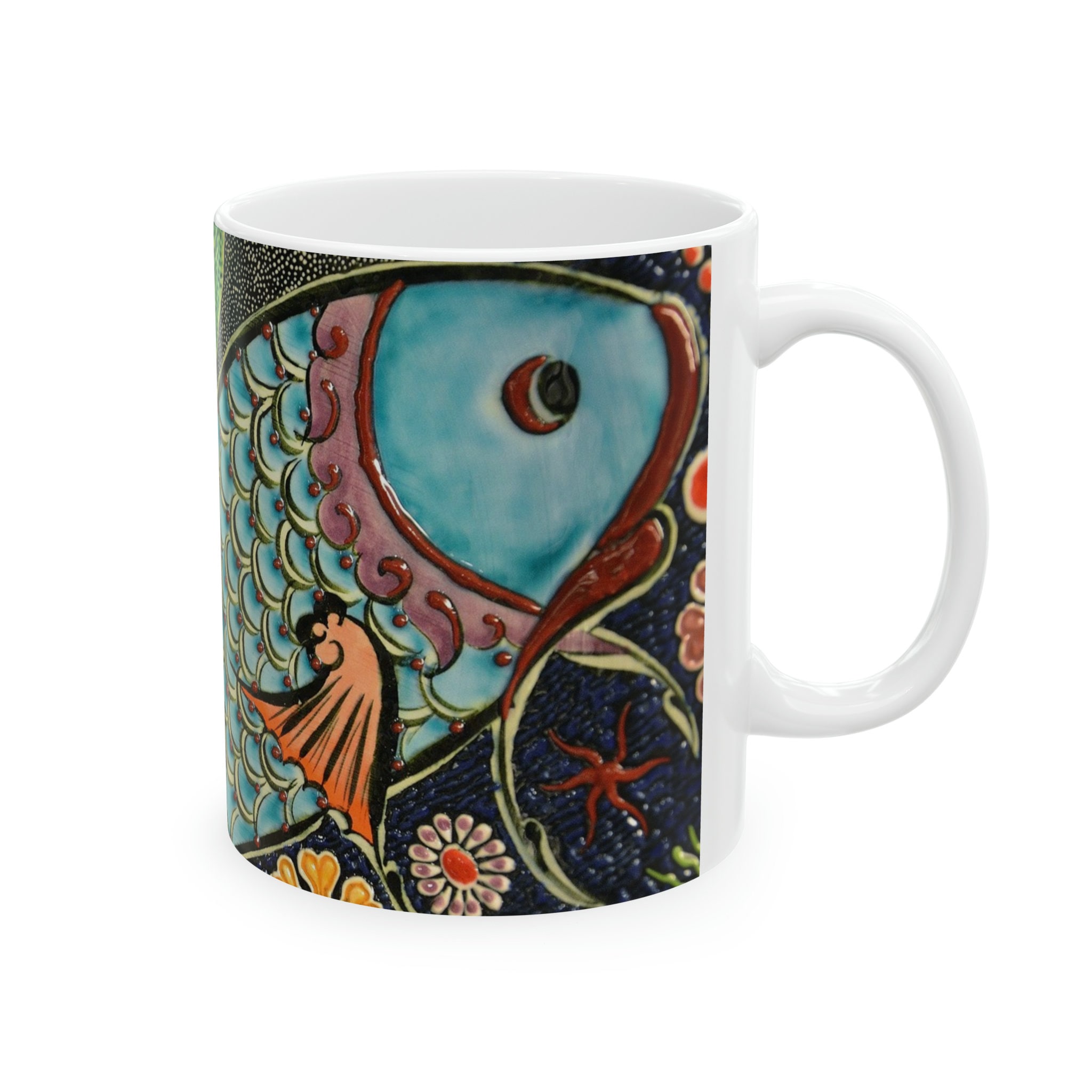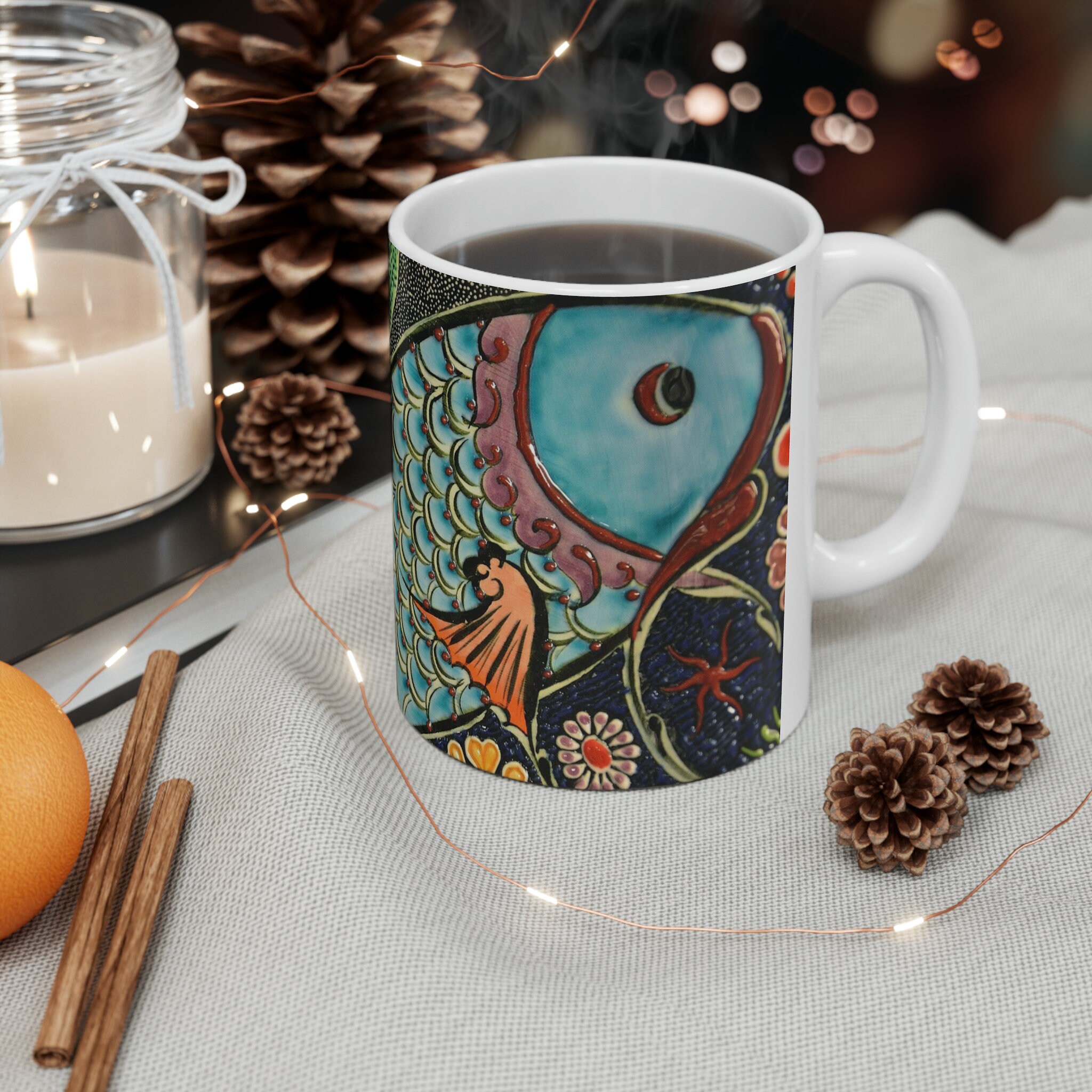 Mosaic Fish Mug, Fish Mug, Artistic Fish Mug, Student Gift, Office Mug Gift, Friendship Gift, Artwork Mug, Mosaic Mug, Fish and Flower Mug