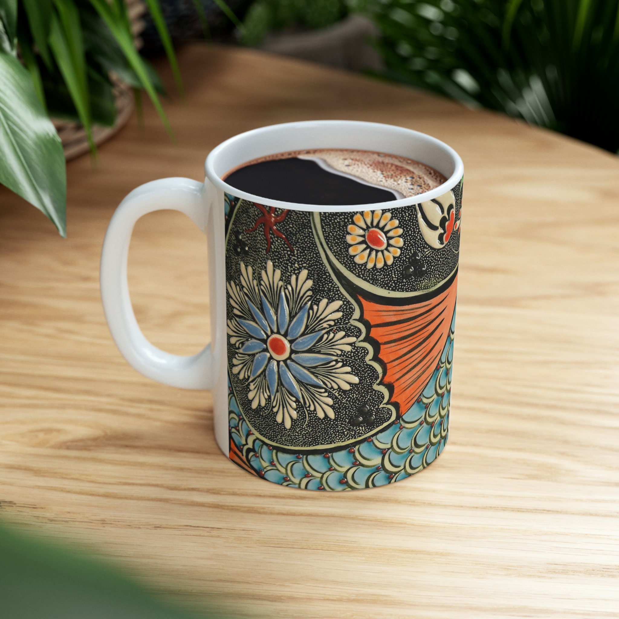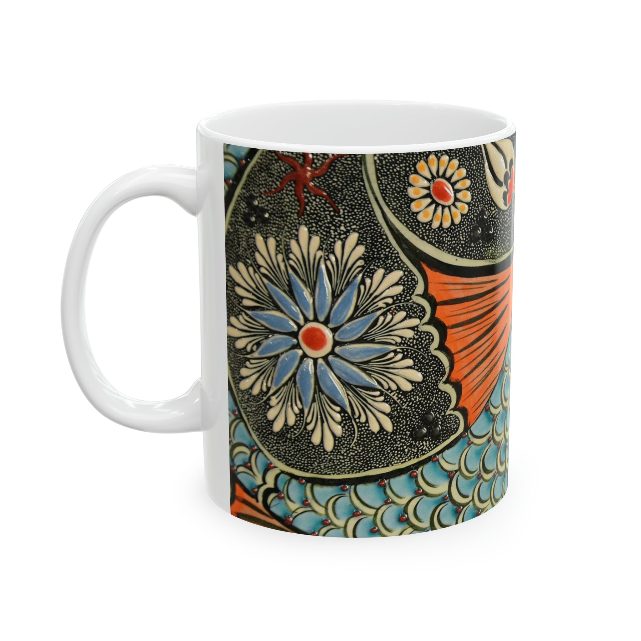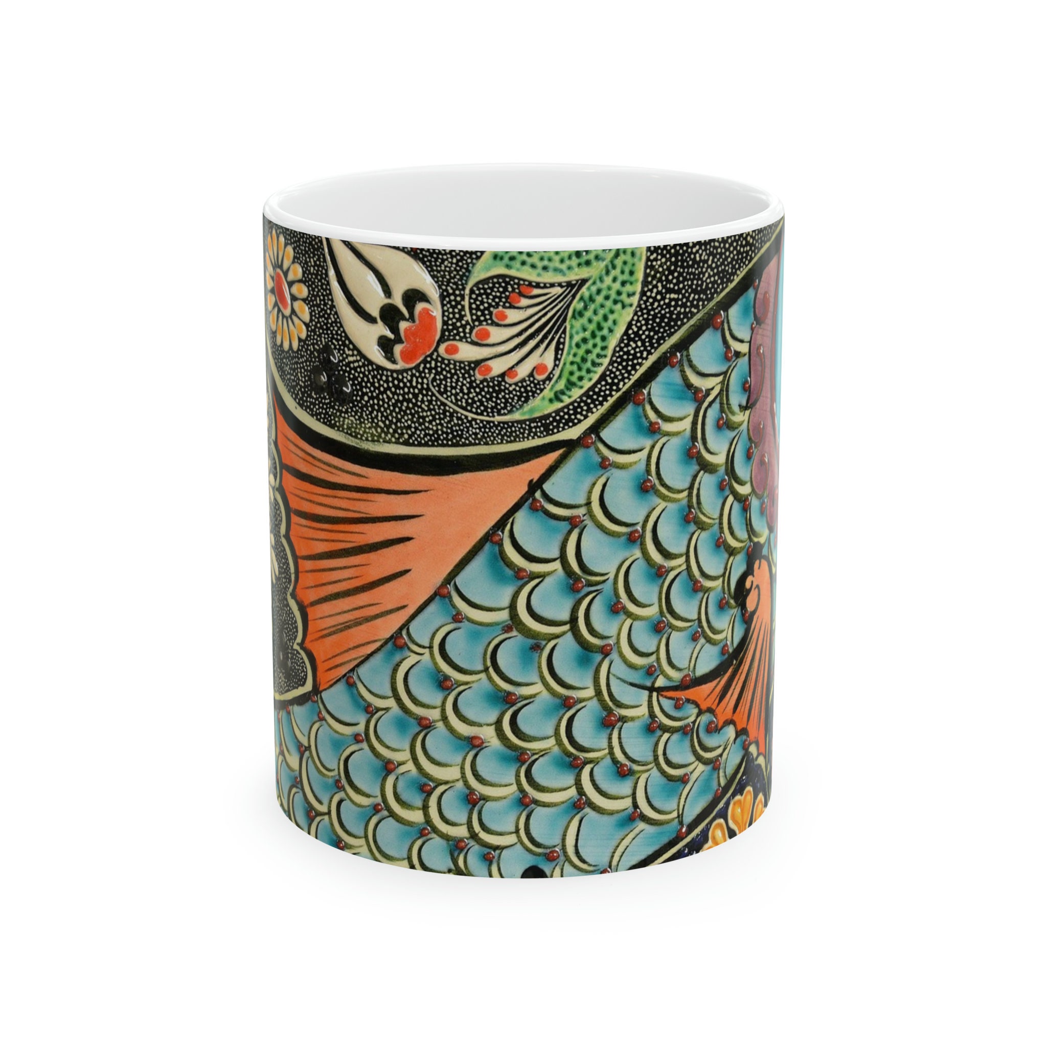 Mosaic Fish Mug, Fish Mug, Artistic Fish Mug, Student Gift, Office Mug Gift, Friendship Gift, Artwork Mug, Mosaic Mug, Fish and Flower Mug
